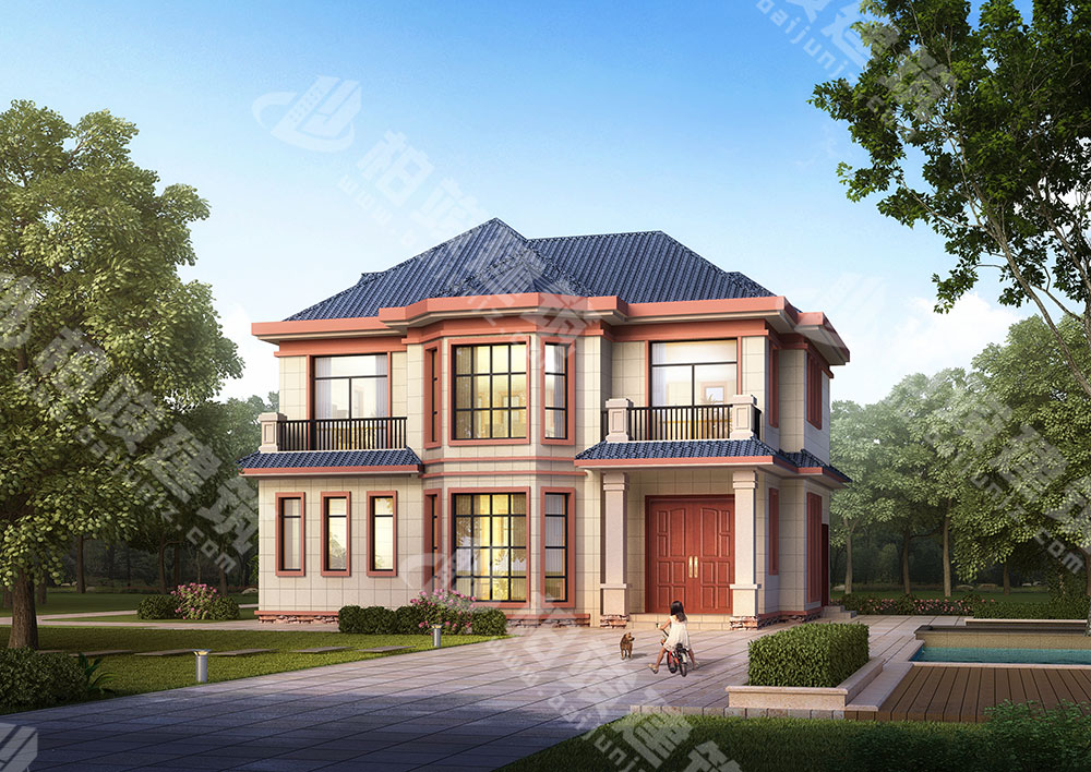 农村二层小别墅设计,二层简欧风格,屋顶平坡结合,内部布局合理实用